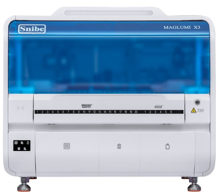 El MAGLUMI X3 es un analizador automático de inmunoensayo diseñado para laboratorios clínicos que requieren precisión, rapidez y eficiencia en el diagnóstico. Utiliza la tecnología de inmunoensayo por quimioluminiscencia con microesferas magnéticas (CLIA), ofreciendo resultados confiables en un amplio rango de pruebas.